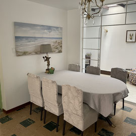 Im Erdgeschoss erwarten Sie eine gut ausgestattete Küche sowie eine kleine Küche in einem innenliegenden Patio, des Weiteren ein kleines Esszimmer, ein Aufenthaltsraum mit Schallplatten und Plattenspieler und zwei Toiletten. Das große Wohnzimmer inklusive Essbereich ist ideal für gesellige Abende mit Familie und Freunden.